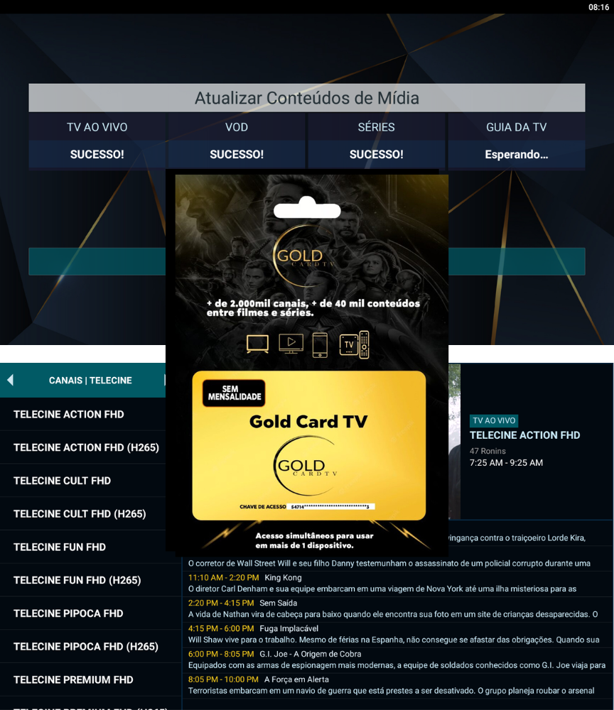 GoldCard vai com o acesso que pega todos os Canais sem mensalidade.